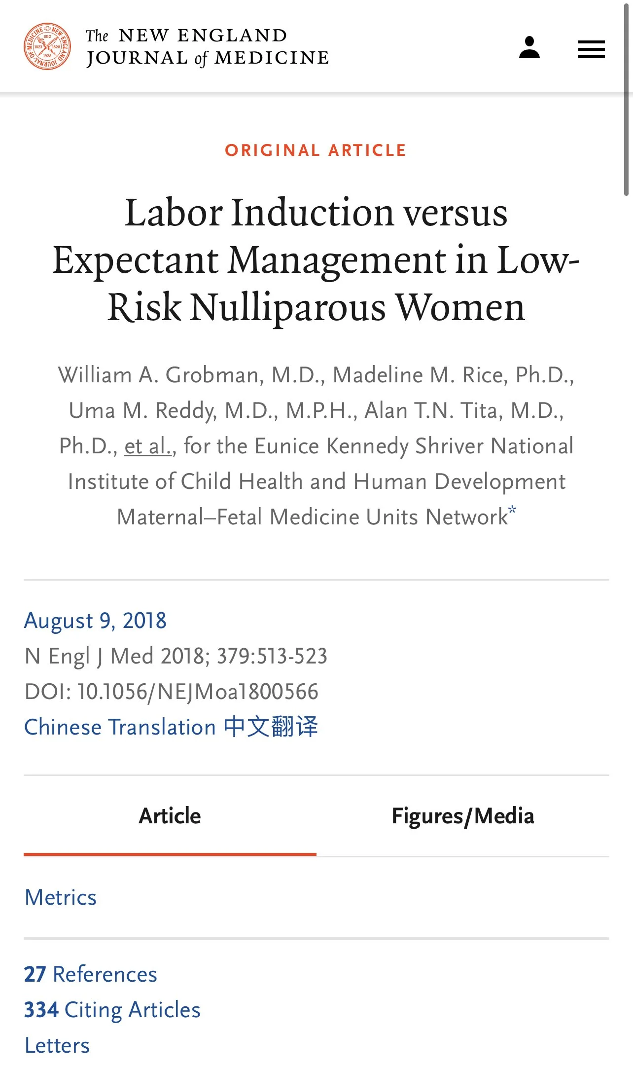 What about even earlier than 41 weeks then? The ARRIVE study included first time mums and compared IOL at 39 weeks versus 40+5. They found no benefit for babies with IOL at 39 weeks, but a slightly lower chance of needing caesarean section with IOL at 39 weeks (19% versus 22%).